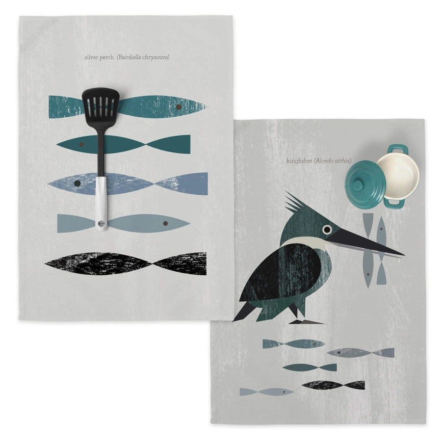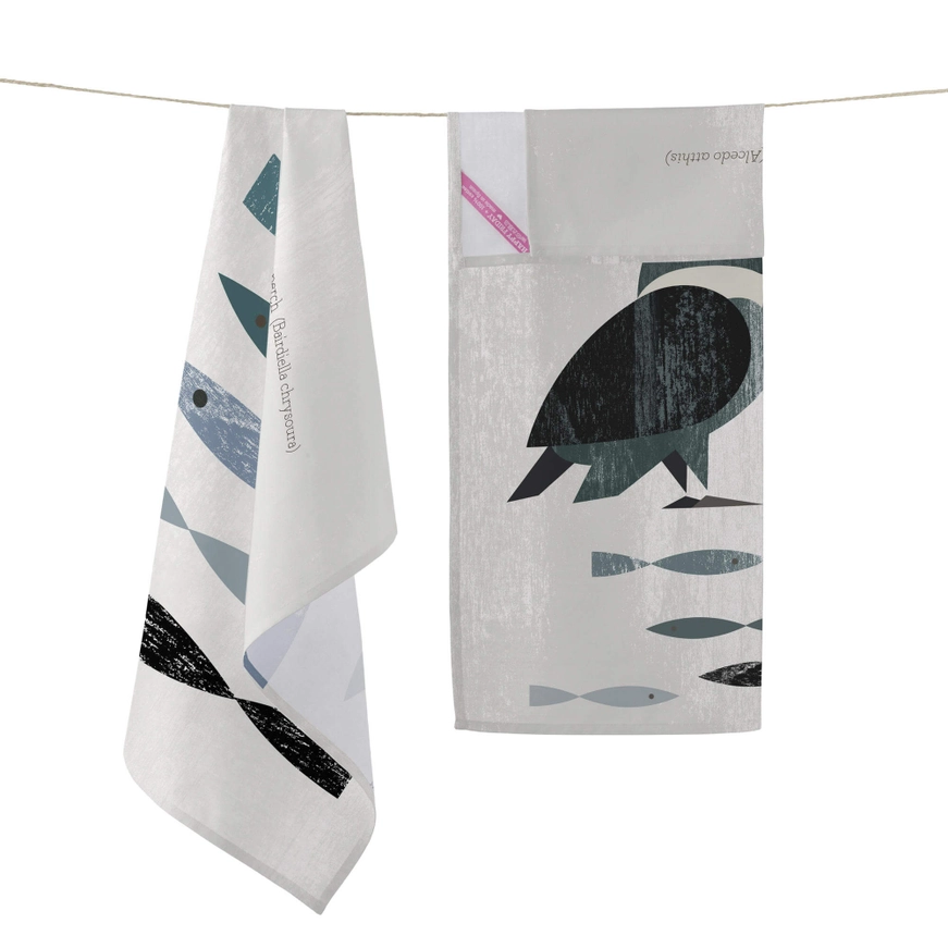 Eisvogel Fische Geschirrtücher 2er Set 50x70cm