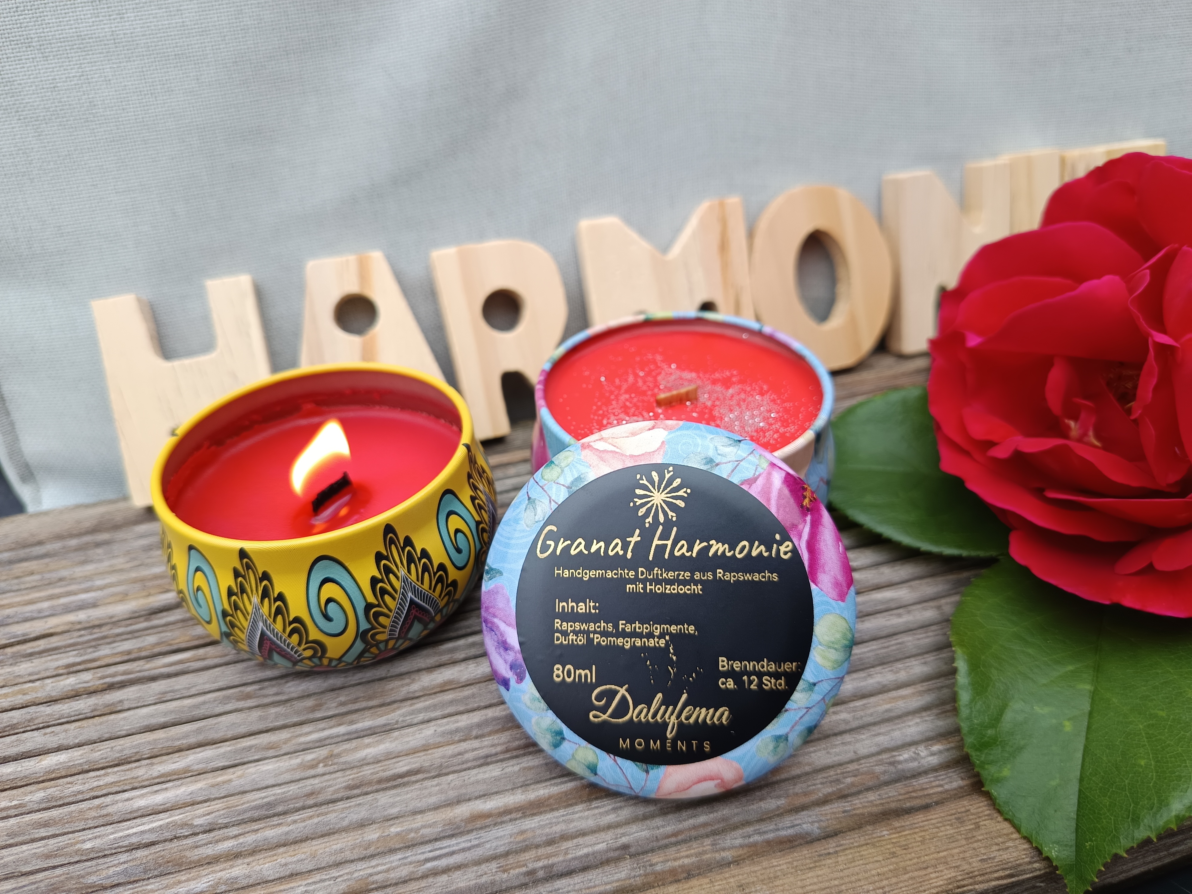 Handgefertigte Duftkerze "Granat Harmonie" – Handgemacht in Blumen-Dose